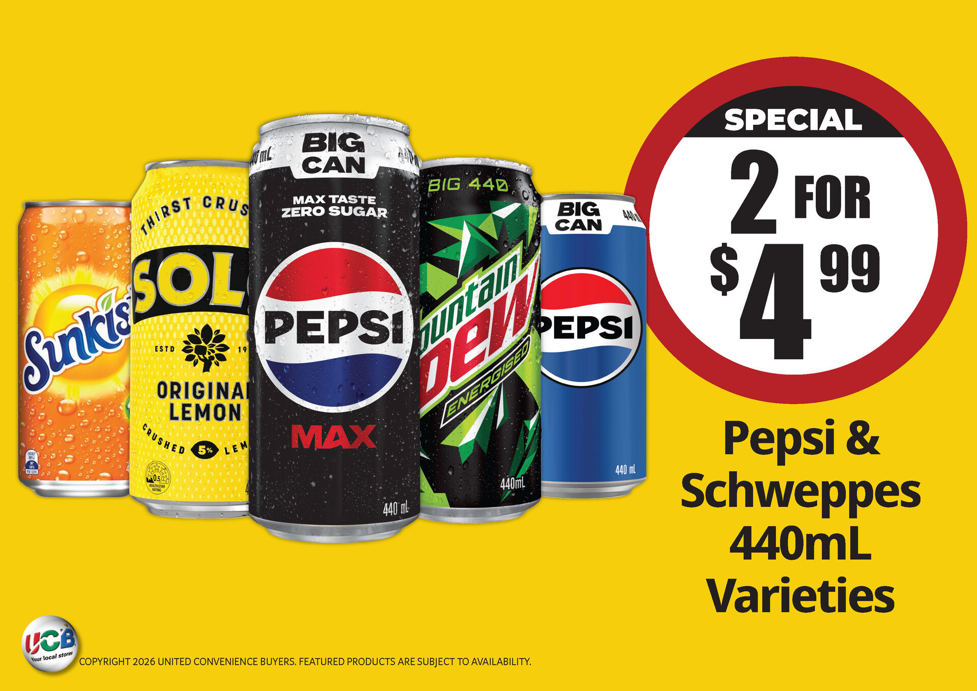 Pepsi & Schweppes 440ml Varieties