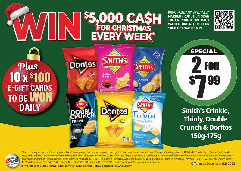 Smith's Crinkle, Thinly, Double Crunch or Doritos 150g-175g -